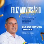 Hoje é dia de comemorar o aniversário do Vereador Bia do Toyota! Hoje é dia de comemorar o aniversário do Vereador Bia do Toyota! 2 de fevereiro de 2026
